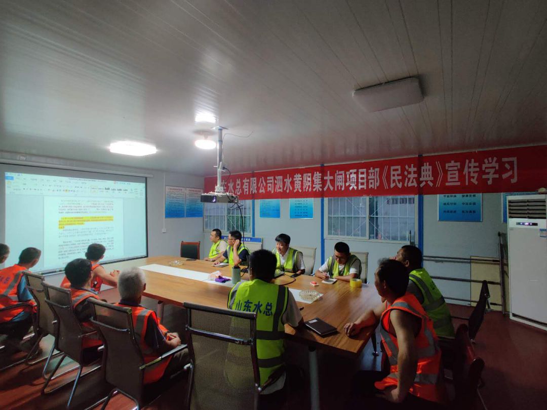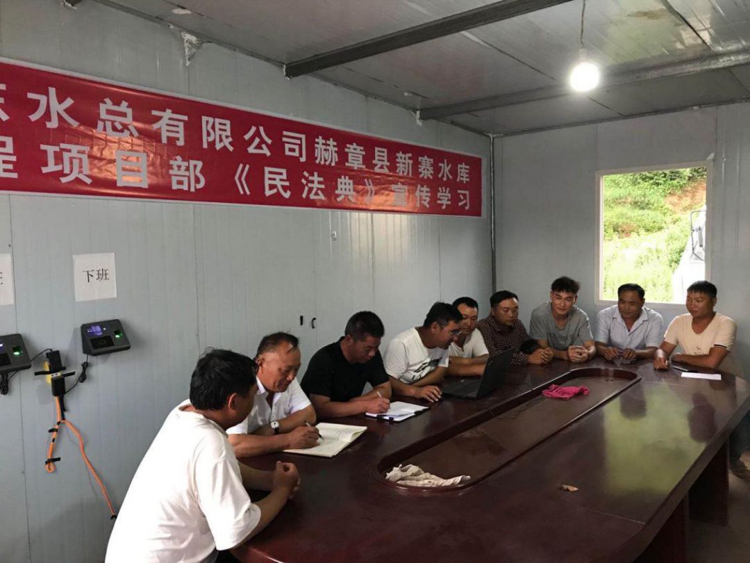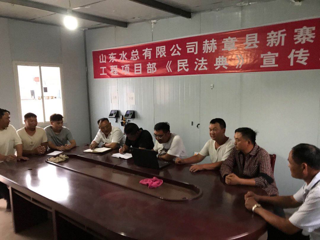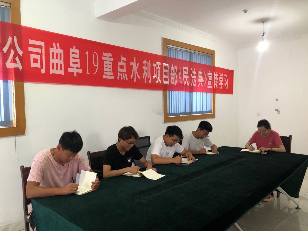 为响应总乐鱼页面在线登录法务与清收办公室组织的“《民法典》宣传月”活动, 7月23日晚上,泗水县黄阴集大闸除险加固工程项目经理部在工地会议室召开《民法典》学习宣贯会议、2020年7月25日,赫章县新寨水库工程项目部全体成员在会议室进行《民法典》宣传学习、曲阜2019年重点水利建设项目施工 一标段在2020年7月28日进行《民法典》学习、平塘县擦耳岩水库工程项目2020年7月29日进行《民法典》学习、宣贯情况汇报如下: