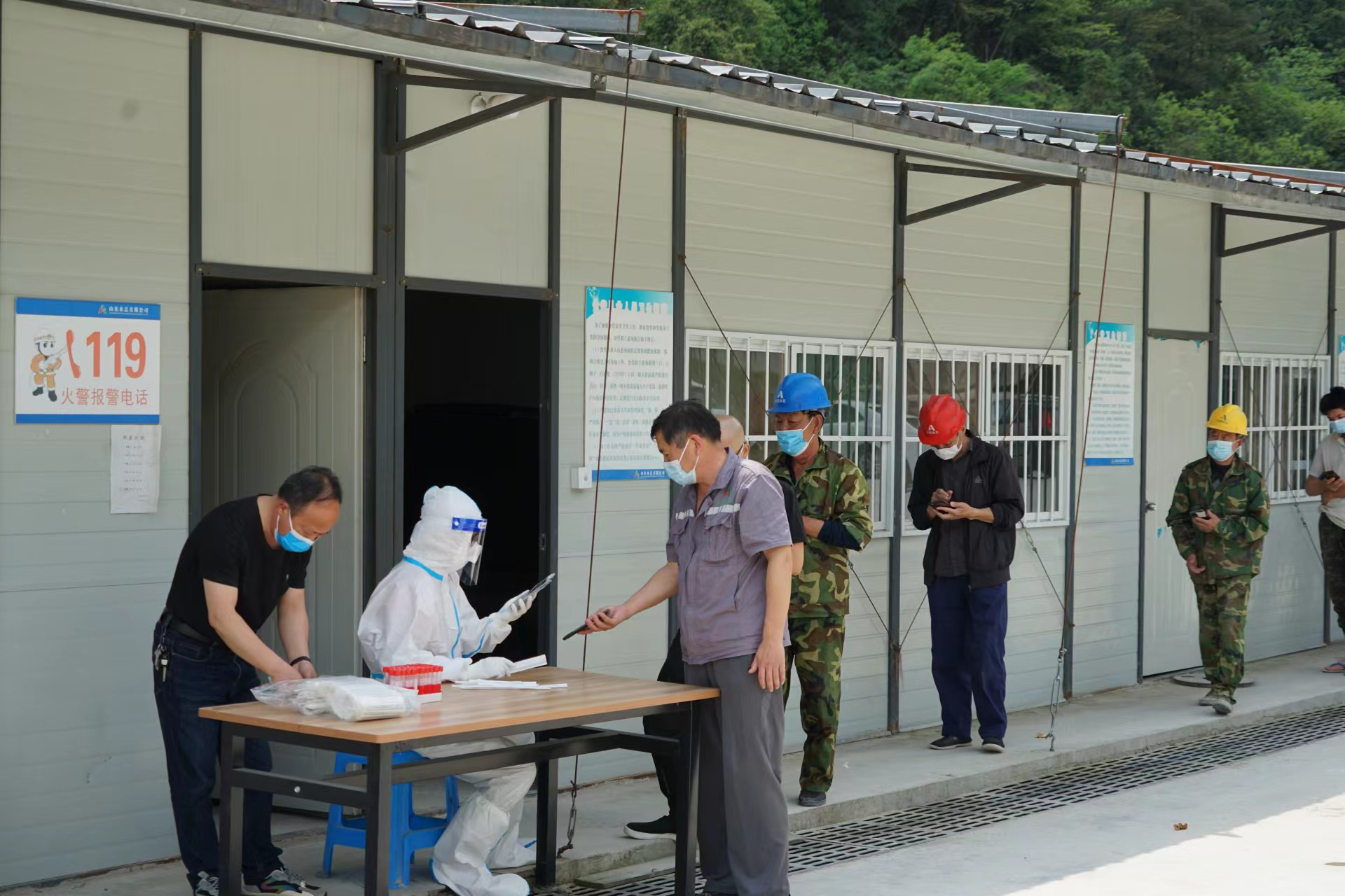 当前,全国疫情呈现反弹态势,疫情防控形势异常严峻。为有效管控疫情传播风险,落实疫情防控主体责任,4月12日,杭州鲁润乐鱼页面在线登录邀请项目驻地清凉峰镇卫生院医护人员,到双溪口水库项目部对全体参建人员进行核酸检测,确保应检尽检、全员覆盖,筑牢建筑工地疫情防控安全网。医护人员来工程现场核酸检测,不仅免去了项目人员到医院排队的不便,更大程度的节约了时间,避免影响正常施工。