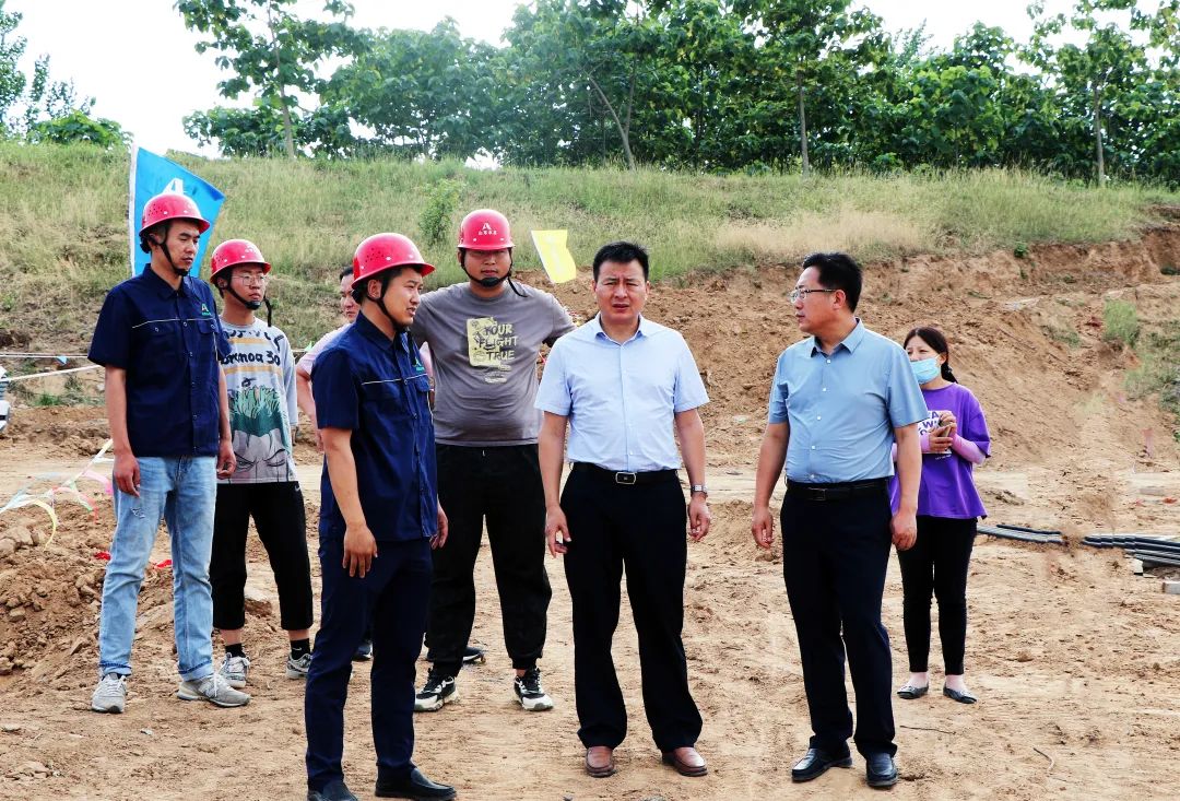 6月15日,郯城县委常委、副县长巩学全,郯城县水利局党组书记、局长谢飞,副局长王渊等一行到第三分乐鱼页面在线登录承建的郯城县重坊橡胶坝工程视察指导工作。