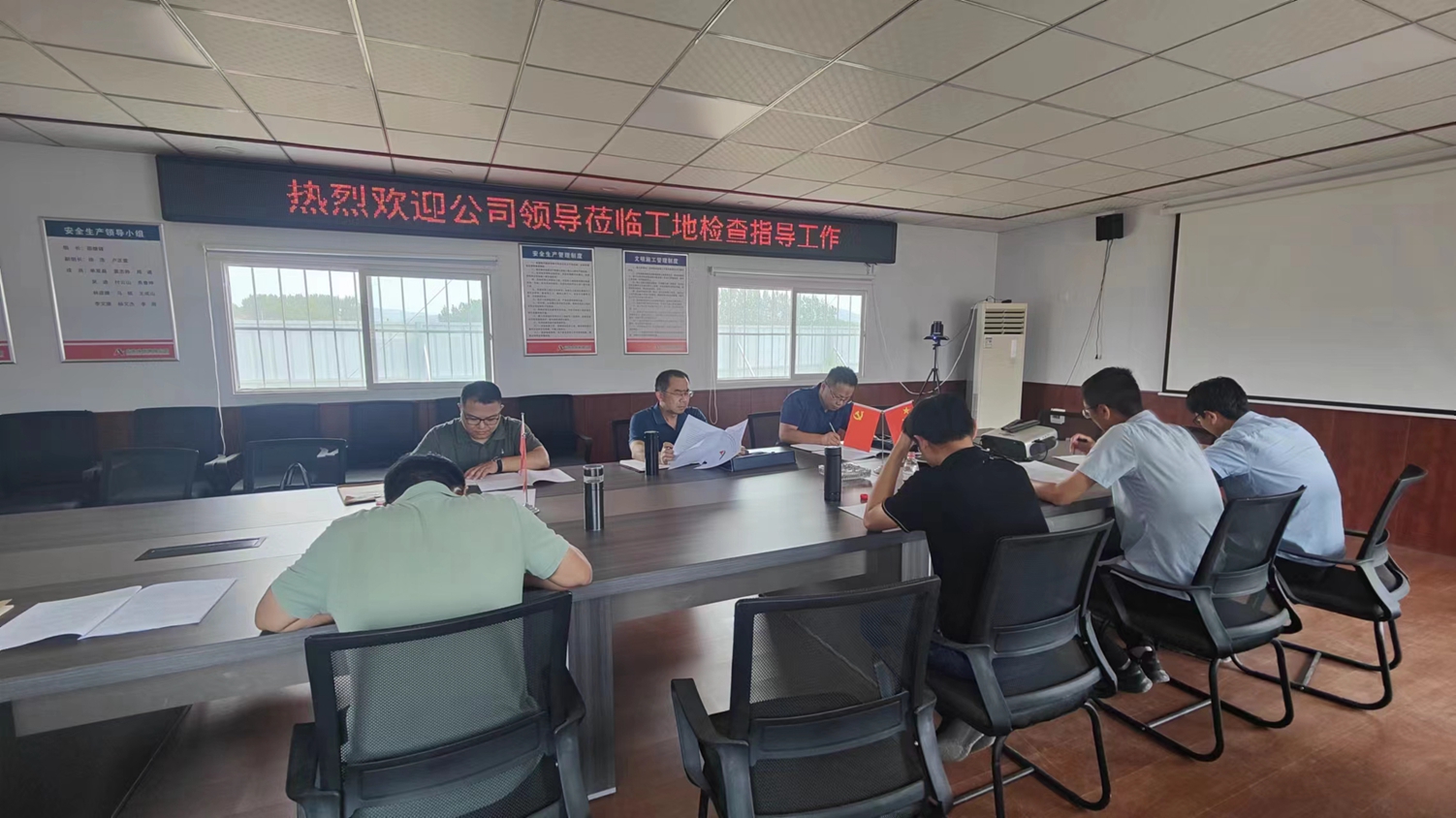 袁英杰一行首先深入施工现场查看项目进展情况。随后,工程管理部对施工现场及内业资料进行检查。袁英杰详细了解项目在质量、成本和进度管理方面的具体措施和成效,并针对项目提出要求,一是要严格按照质量标准进行施工,加强质量监控和检测,确保每一个环节都达到规定要求;二是在保障工程质量的前提下,合理控制成本,优化资源配置,提高资金使用效率;三是严格按照施工计划加快推进工作,确保项目按期完成。
