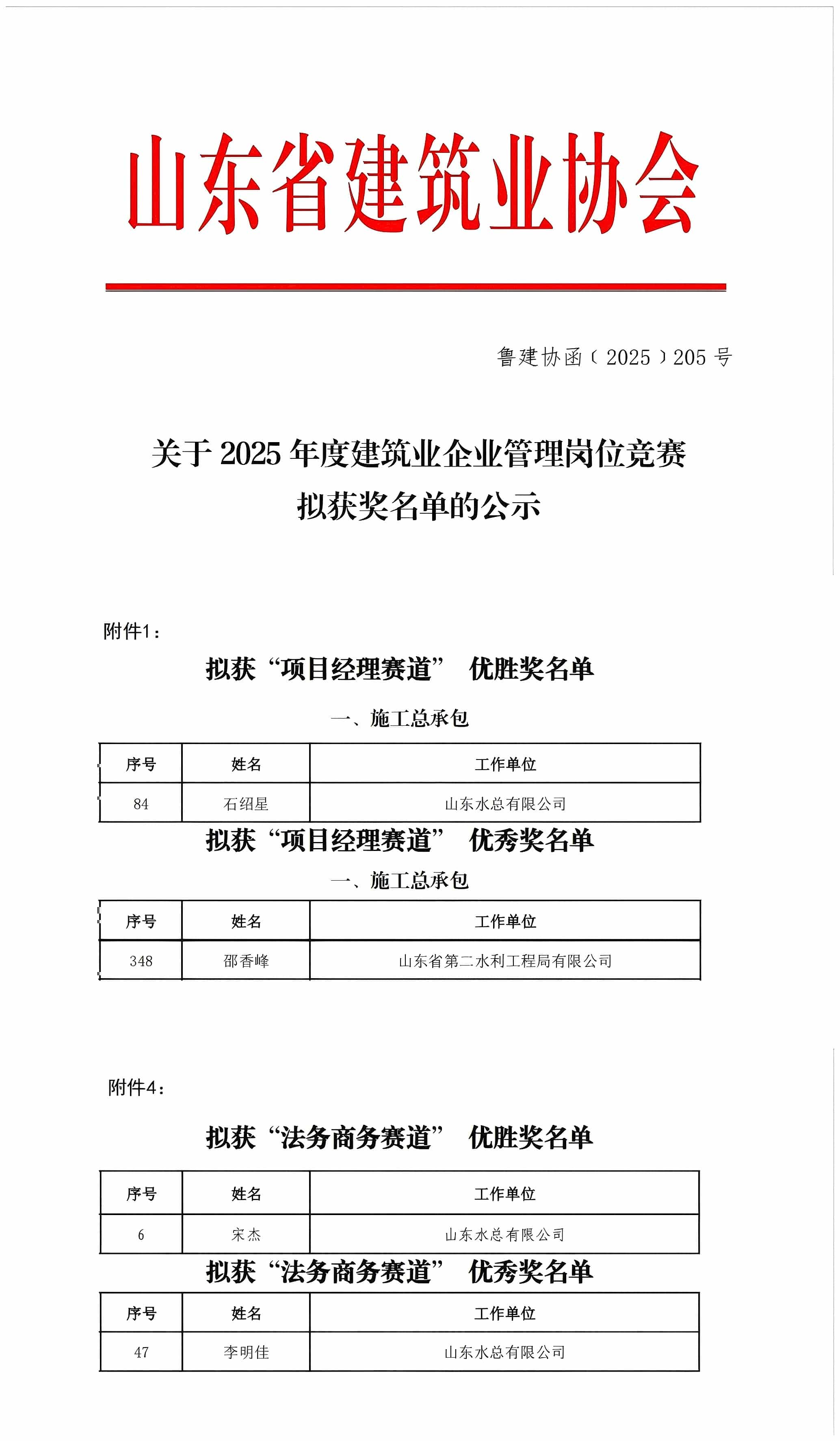 近日,由山东省建筑业协会发起的2025年度建筑业企业管理岗位竞赛圆满落幕,乐鱼页面在线登录选送的参赛人员凭借扎实的专业素养、精湛的管理能力脱颖而出,在“项目经理赛道”中,第三分乐鱼页面在线登录石绍星获优胜奖,二局有限乐鱼页面在线登录邵香峰获优秀奖;在“法务商务赛道”中,企业管理部宋杰获优胜奖,第三分乐鱼页面在线登录李明佳获优秀奖。以上荣誉的获得充分彰显了乐鱼页面在线登录建筑行业管理岗位人才的专业素养与创新活力。
